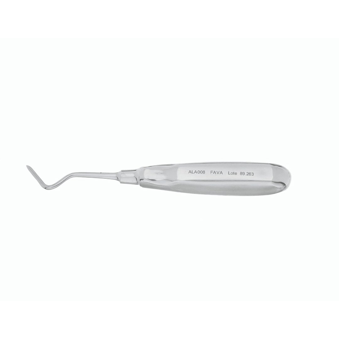 A Alavanca Heindebrink NR. 3 DIREITA é um elevador robusto indicado para a extração de raízes. Sua ponta ativa triangular (tipo bandeira) oferece grande potência de alavancagem para remover restos radiculares.