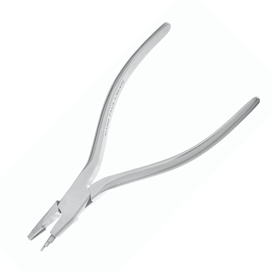 O Alicate NR 350 Loop Omega FAVA (Tweed) é especializado na confecção de alças Ômega (Omega Loops) uniformes em fios retangulares, essenciais para stops e ativações.