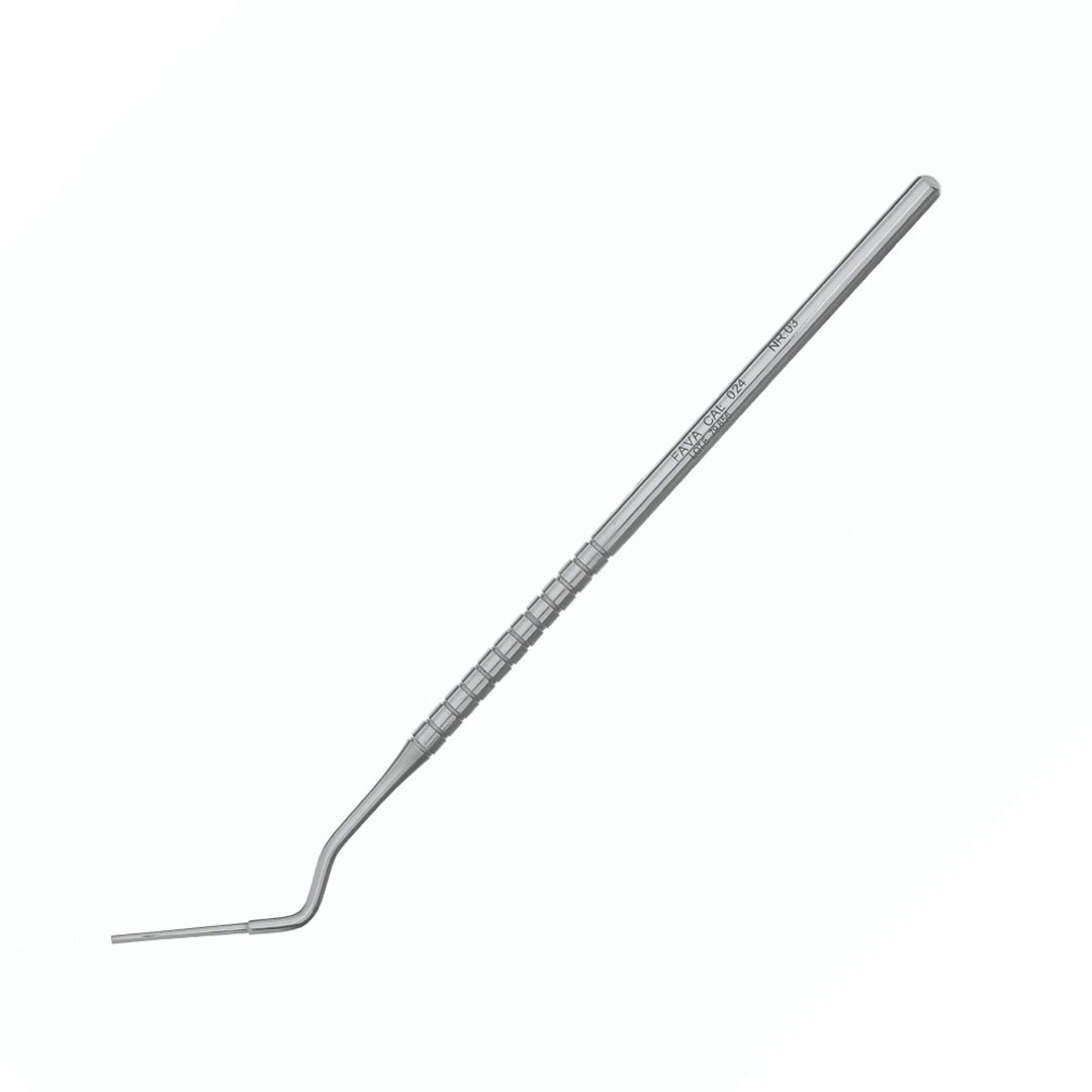 O Calcador Paiva NR. 03 FAVA é utilizado para a condensação vertical e horizontal de materiais restauradores na cavidade. Sua ponta permite a compactação adequada, eliminando bolhas e garantindo a integridade da restauração.