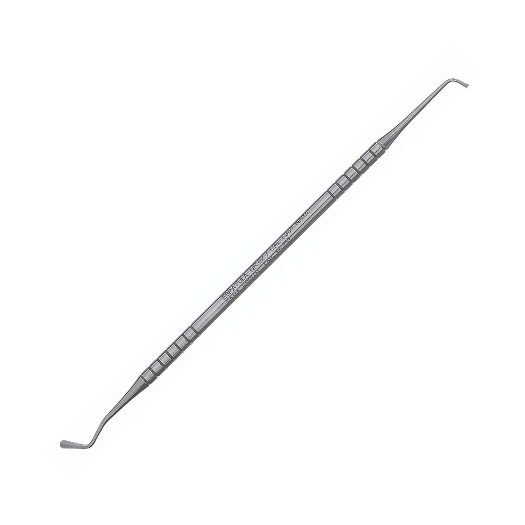A Espatula NR. 02 /Calc.6335 NR. 2 FAVA é um instrumento versátil para a manipulação, inserção e escultura de materiais odontológicos. Seu design oferece controle e facilidade no manuseio de resinas e cimentos.