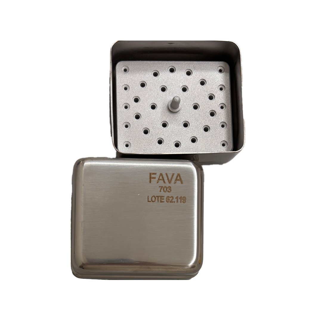 Robusto e confiável, o Estojo Inox 104PFI possui acabamento seguro sem rebarbas e design perfurado, ideal para garantir ventilação e esterilização eficiente.