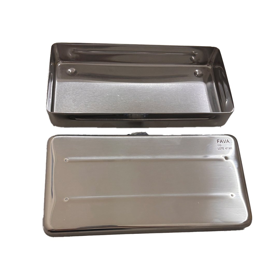 Compacto e resistente, o Estojo Inox da Fava é fabricado com qualidade superior, sendo ideal para a organização e esterilização de instrumentais em diversas especialidades.