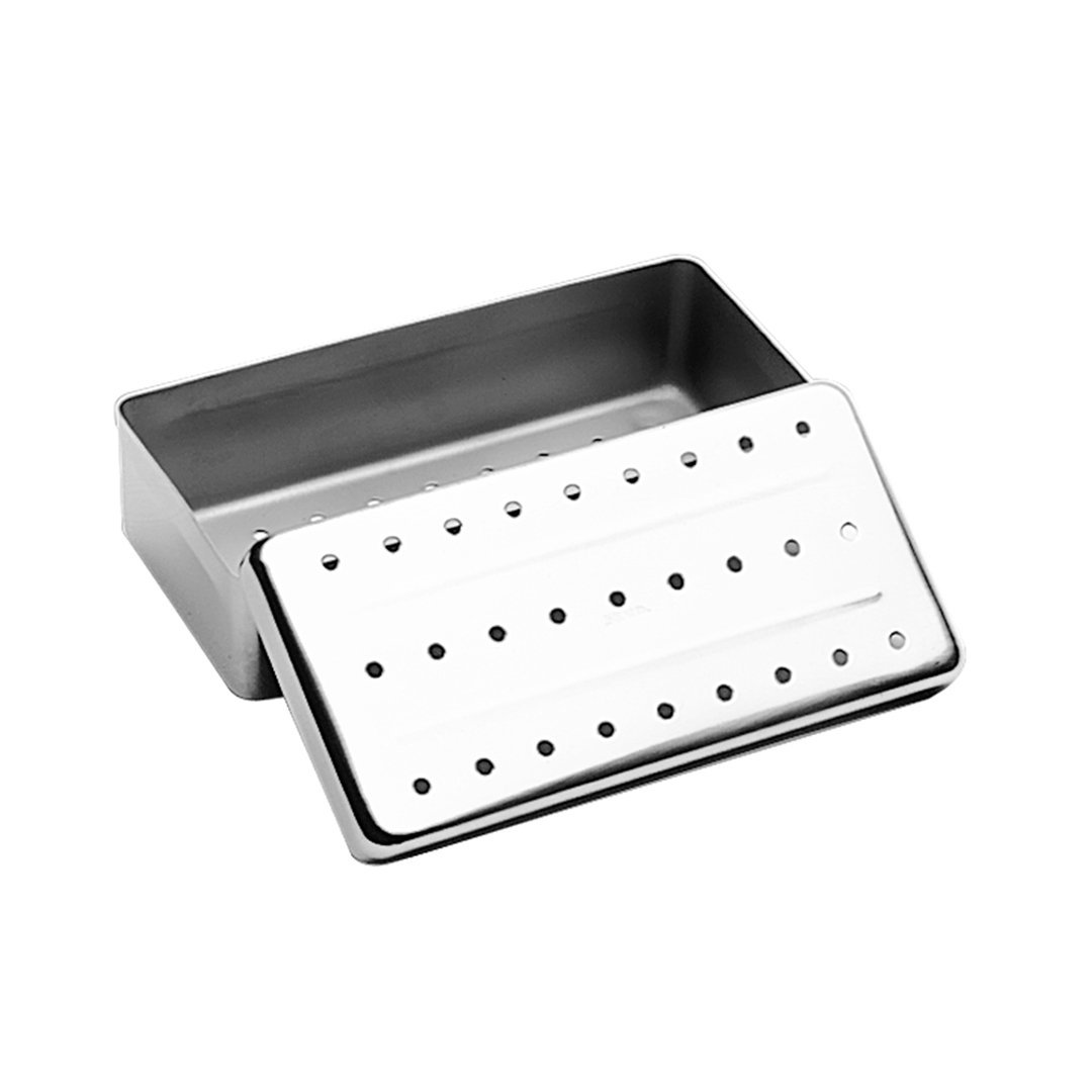 Fabricado em aço inoxidável, este estojo possui design perfurado que facilita a esterilização eficiente de pequenos instrumentos, garantindo durabilidade e resistência.