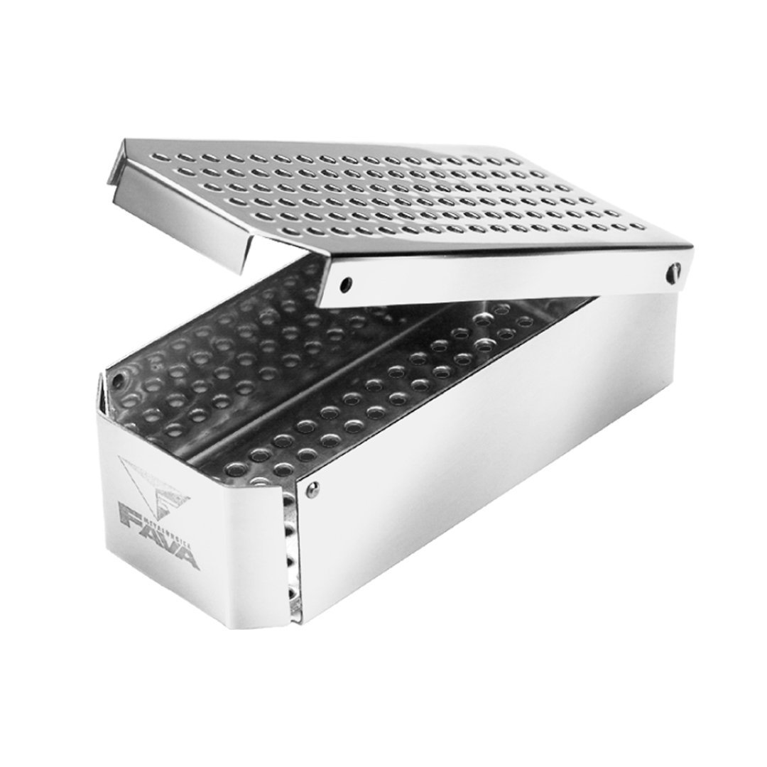O Estojo Inox 101PFI da Fava oferece durabilidade e acabamento polido, com estrutura perfurada que permite ventilação ideal para esterilização em estufas e autoclaves.