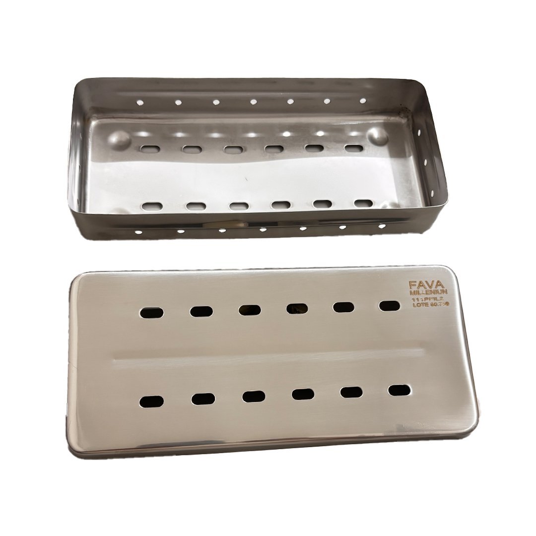 A escolha ideal para instrumentos de menor porte, o modelo 112PFI oferece acabamento liso e estrutura perfurada para uma esterilização perfeita e segura.