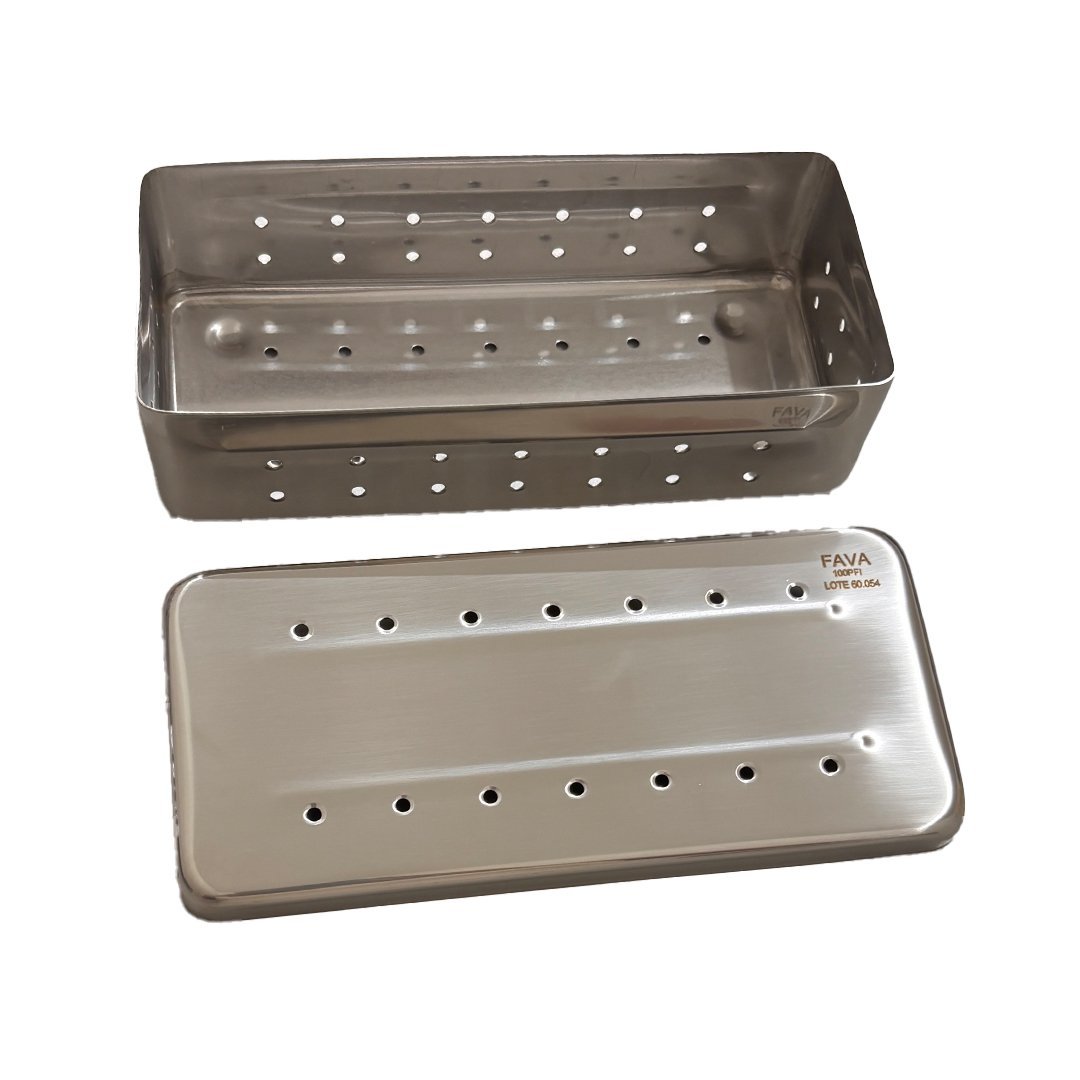 Essencial para a esterilização segura, o Estojo 113PFI da Fava apresenta grande durabilidade e um design perfurado que assegura ventilação eficiente em autoclaves.