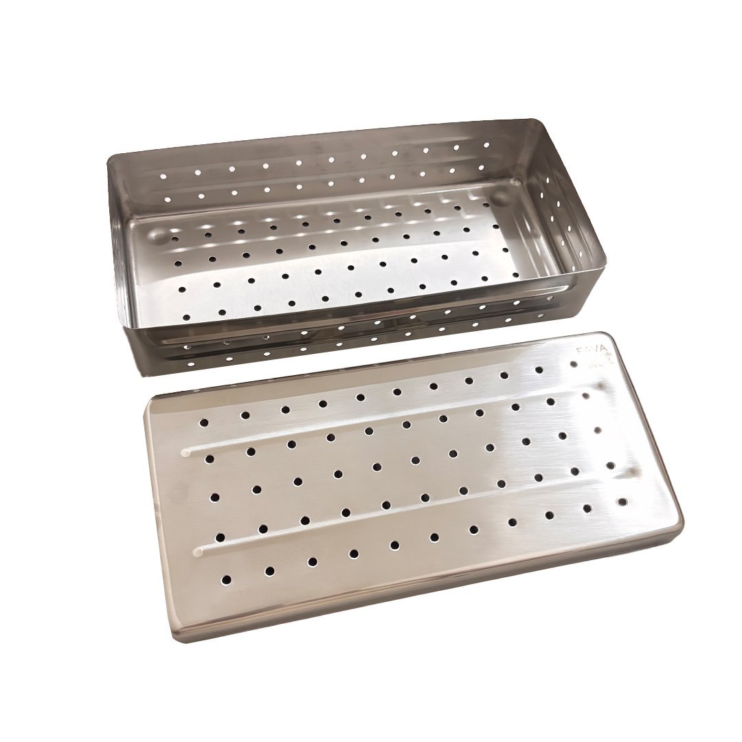 Estojo compacto em aço inox, totalmente liso por dentro, ideal para armazenar instrumentos diversos com segurança, praticidade e facilidade de limpeza.