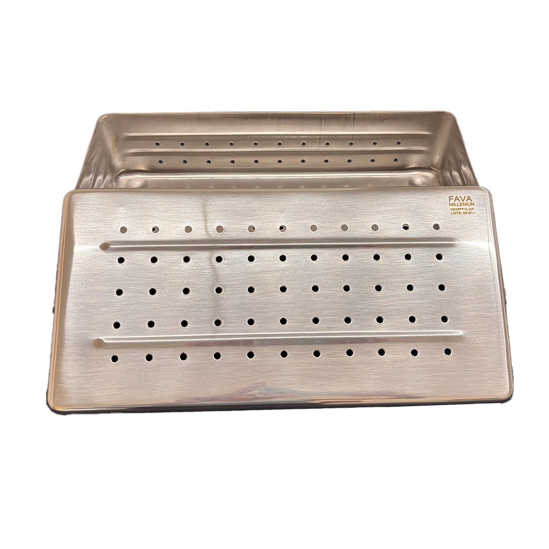 O Estojo Inox 101PFI da Fava oferece durabilidade e acabamento polido, com estrutura perfurada que permite ventilação ideal para esterilização em estufas e autoclaves.