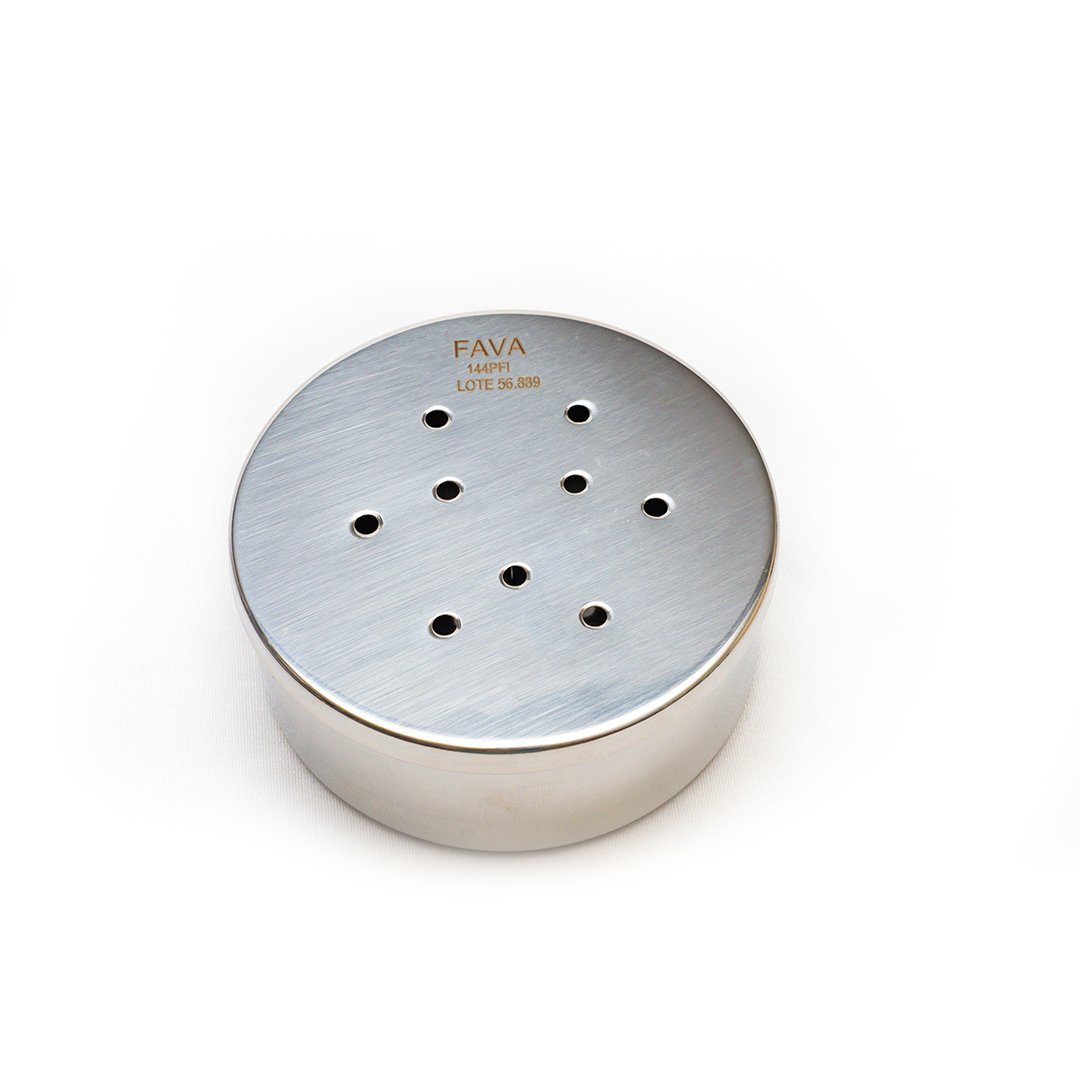 O Estojo Inox da Fava possui estrutura perfurada que permite excelente ventilação, garantindo uma esterilização eficiente em autoclaves e mantendo os instrumentos organizados.