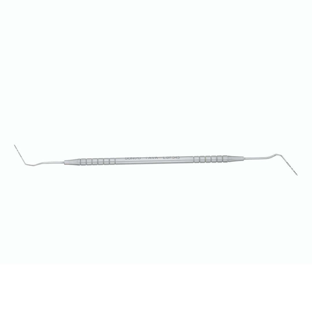 A Cureta Gracey 5/6 FAVA é ideal para a instrumentação de dentes anteriores e pré-molares. Sua haste intermediária permite versatilidade em bolsas periodontais moderadas.
